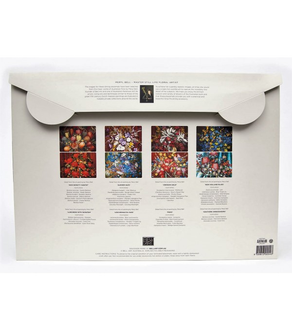 These placemats features eight of Meryl Bell's magnificent floral arrangements, perfect setting for your dinning table!