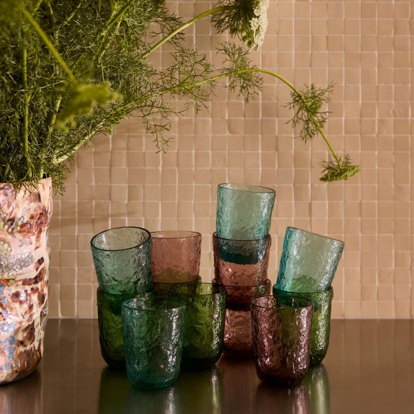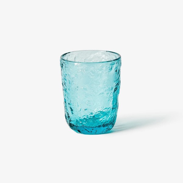 A textured glass tumbler in blue. Designed for everyday use, from water to wine.