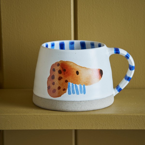 This delightful Fred Mug from the RGA x Carolyn Gavin "4 Dogs & a Cat" collaboration showcases Gavin's signature painterly style. Featuring a cast of colorful characters, this ceramic mug adds a touch of whimsy to your morning coffee or afternoon tea.