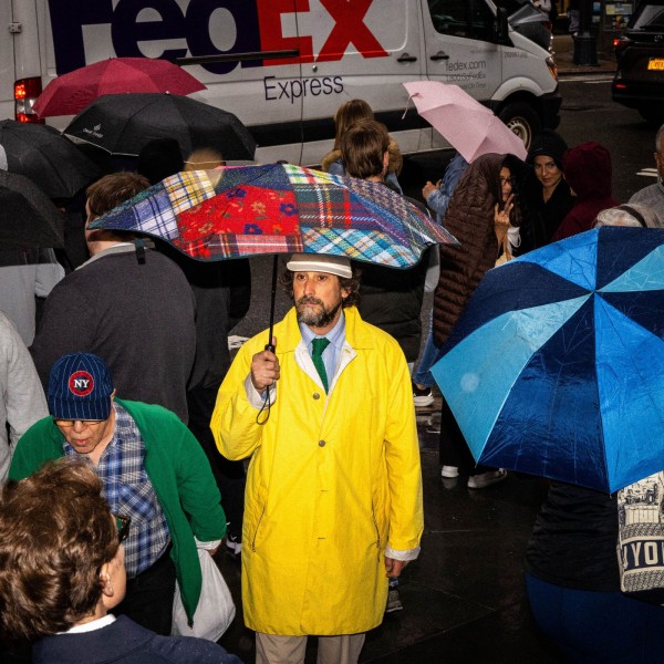 Introducing Mordechai Rubinstein. Mordechai Rubinstein has spent his career capturing everyday style with an eye for authenticity. Featured in GQ, The New York Times and Vogue, he has also worked with Levi’s and Marc Jacobs, always bringing his own distinctive take. For this collaboration, he drew from his own wardrobe, collaging tweed, plaid and wool into a canopy that, in his words, celebrates “the most interesting fashion off the runway.”
