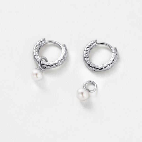 The Emery Huggie combines texture and elegance in one timeless design. Featuring a gold-toned, hammered-style hoop paired with a removable freshwater pearl charm, this earring offers versatility to suit any occasion. Wear it with the pearl for a refined, feminine look or on its own as a chic everyday hoop.