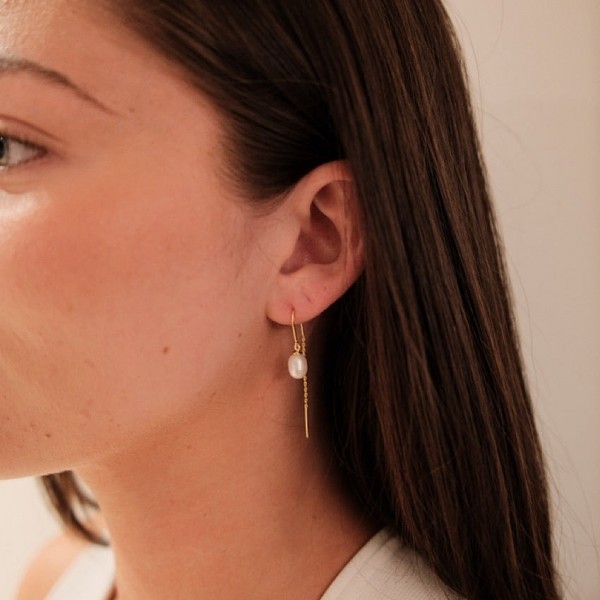 The Talia Thread Earring is a delicate, contemporary design that blends simplicity with elegance. Featuring a single freshwater pearl suspended from a fine gold thread, this style offers fluid movement and a refined touch. Perfect for elevating everyday looks or adding understated glamour to evening wear, Talia is a versatile piece that’s as effortless as it is timeless.