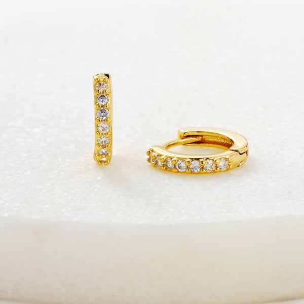 The Ally Huggie is a dainty crystal-studded hoop, designed to add a subtle sparkle to your everyday style. Perfect for stacking or wearing solo, this delicate piece is a timeless addition to any jewellery collection.