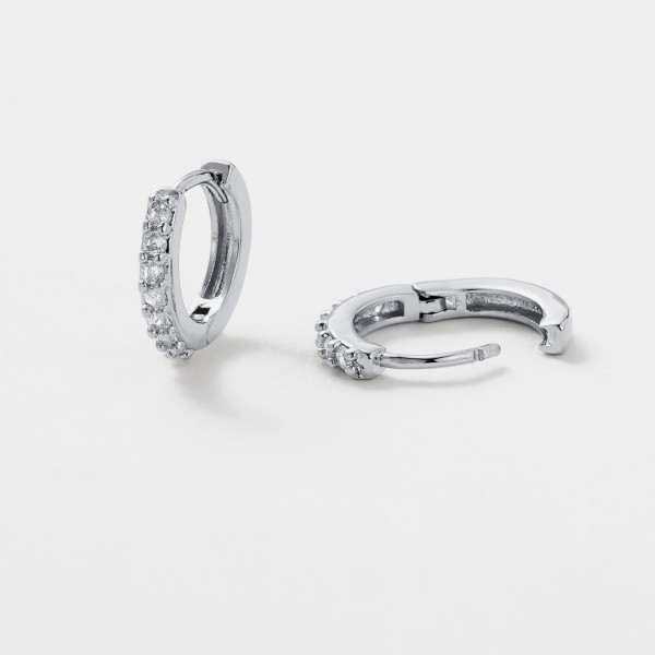 The Ally Huggie is a dainty crystal-studded hoop, designed to add a subtle sparkle to your everyday style. Perfect for stacking or wearing solo, this delicate piece is a timeless addition to any jewellery collection.