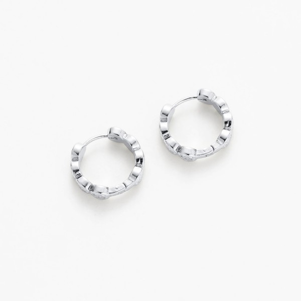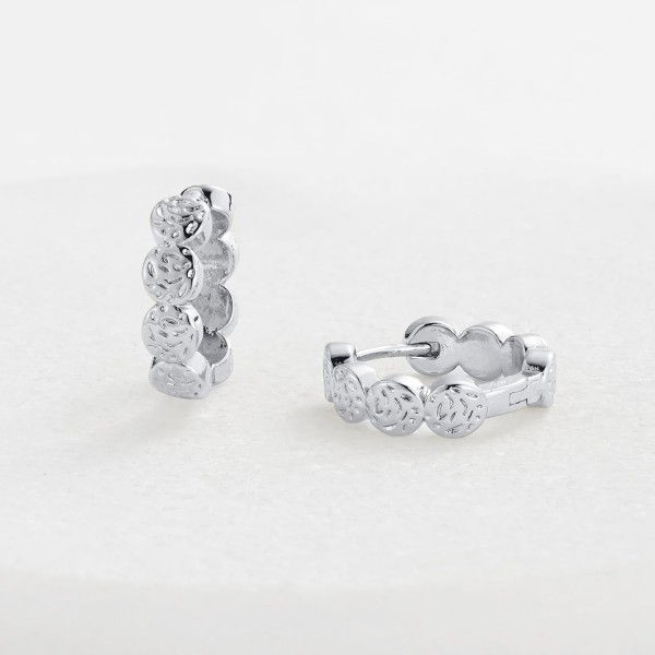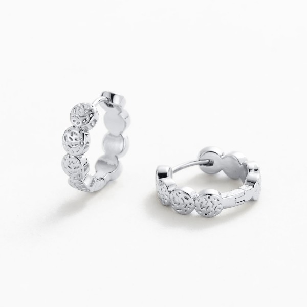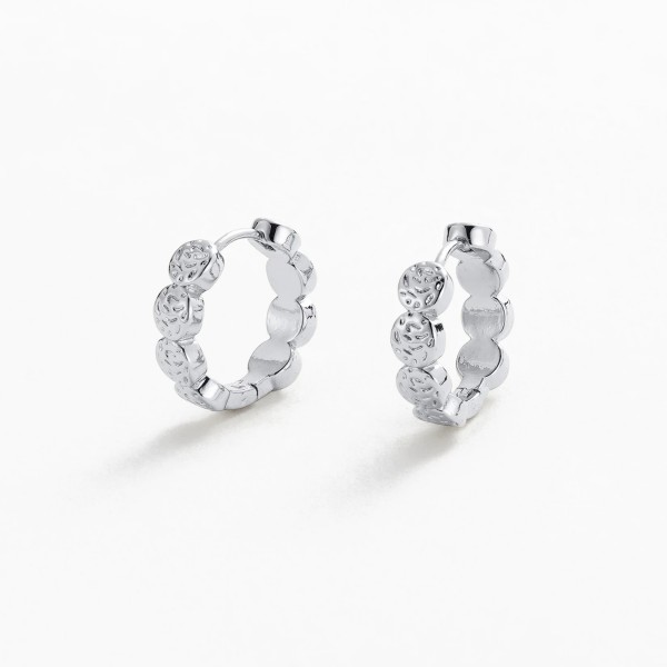 The Josie Huggie is a textured small hoop that brings subtle detail to a timeless silhouette. Featuring an intricate embossed design in a polished silver finish, this huggie is lightweight, versatile, and perfect for everyday wear. Style solo for understated elegance or stack with other hoops and studs for a layered ear.