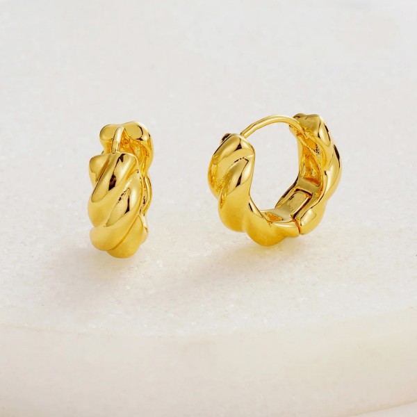 Featuring a unique twist design, these Huggies offer a modern yet timeless appeal, perfect for stacking or wearing solo. Their sleek silhouette and lightweight feel make them an essential addition to your jewellery collection.