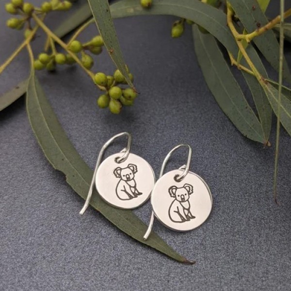 erin.k | Earrings | Aussie Bush | Koala Disc Earrings | Sterling Silver