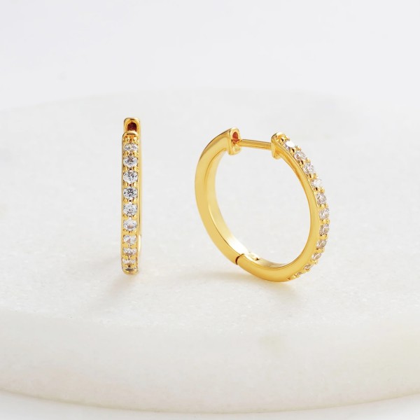 The Catalina Hoop is a modern classic designed to take you from day to night with ease. Featuring a sleek gold finish and a refined crystal detailing, this hoop strikes the perfect balance between understated elegance and everyday glamour. Wear solo for a minimal statement or layer with studs and huggies for a chic stacked look.