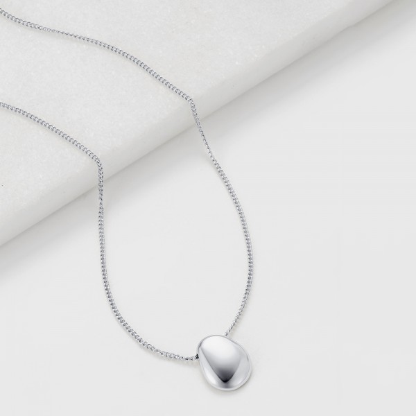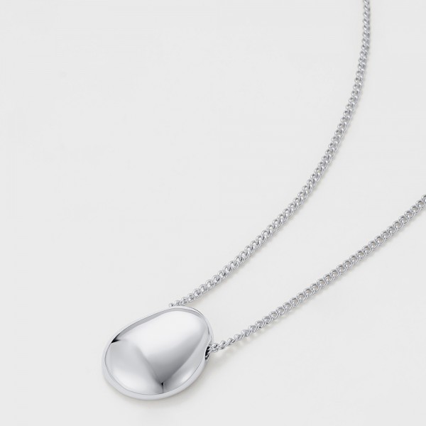 A minimalist necklace featuring a sleek bean-shaped pendant, perfect for effortless, everyday elegance.