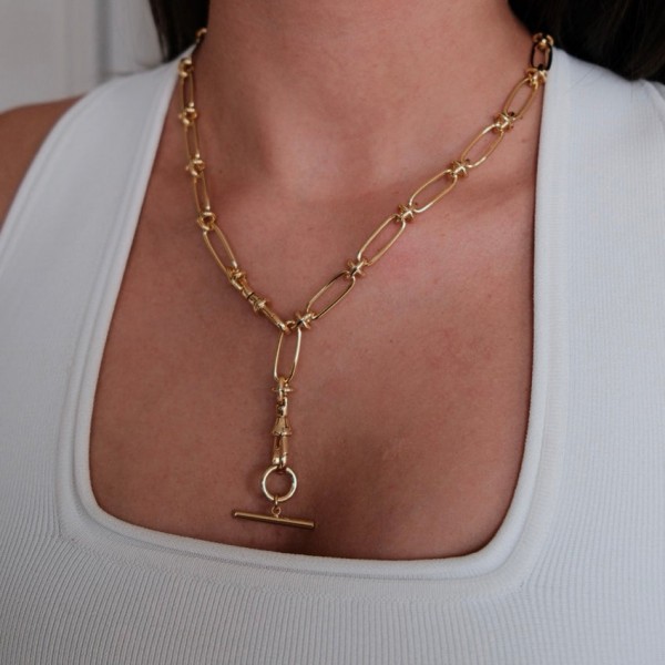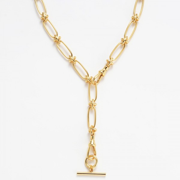 The Lucia Necklace is the ultimate in versatile styling — wear it as a classic chain or as a lariat for a modern twist. Featuring an elegant fob pendant that can also be removed, this piece allows you to customise your look with ease. Crafted in polished gold links, Lucia is a timeless design made for layering or wearing solo as a statement.