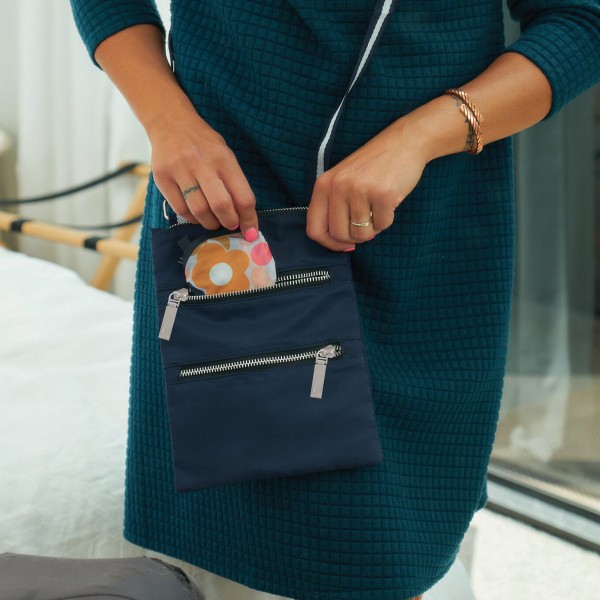 They’re back!! New and improved design, made with quality metal zipper pulls, water resistant polyester fabric and a narrow adjustable shoulder strap in an on-trend stripe design. These bags have been an Annabel Trends favourite for over 10 years, and rightly so. Perfect for day trips, compact enough to hold your essentials – with 3 zip pockets to stash your phone, money, makeup, passport.