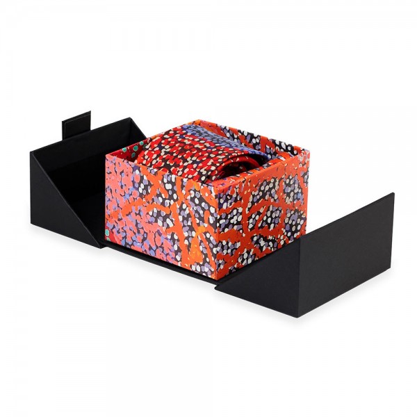 The Steven Jupurrurla Nelson Silk Tie Set combines elegance and cultural heritage with a 100% silk tie and matching pocket square featuring striking Aboriginal art. Gift boxed for a polished presentation, this set adds a refined and meaningful accent to any formal look, making it an exceptional choice for yourself or as a thoughtful gift.