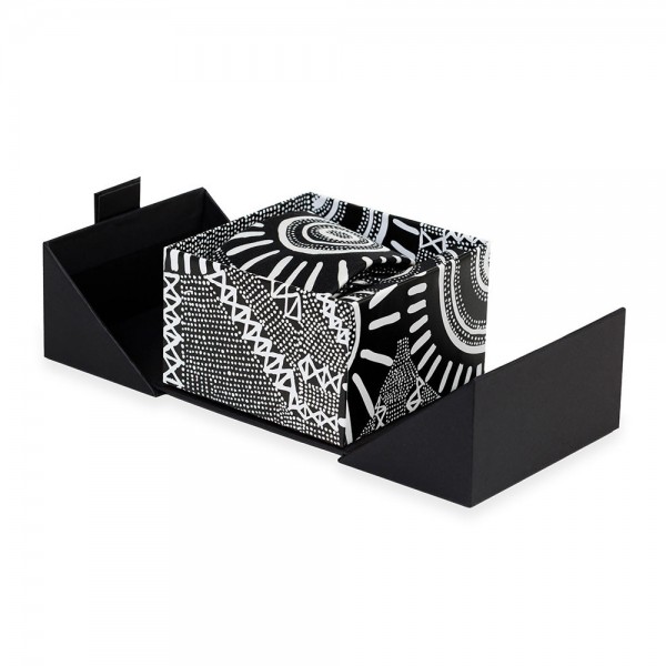 The Lidwina (Nina) Tepomitari Silk Tie Set combines elegance and cultural heritage with a 100% silk tie and matching pocket square featuring striking Aboriginal art. Gift boxed for a polished presentation, this set adds a refined and meaningful accent to any formal look, making it an exceptional choice for yourself or as a thoughtful gift.