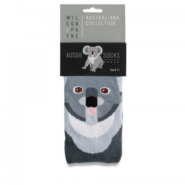 The Koala is one of Australia's best-known animals. The Koala's thick ash-grey fur, white chest and round head with fluffy ears make this species unmistakable. You can now wear this iconic mammal with its fluffy bottom as a WilsonPayne sock.