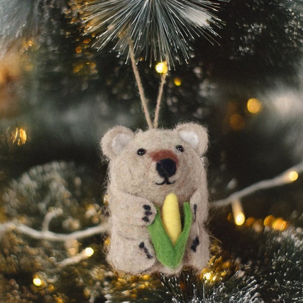 Inspired by La La Land Garden Giggles collection - celebrate Christmas with this cute felt wombat grasping some corn from the garden.