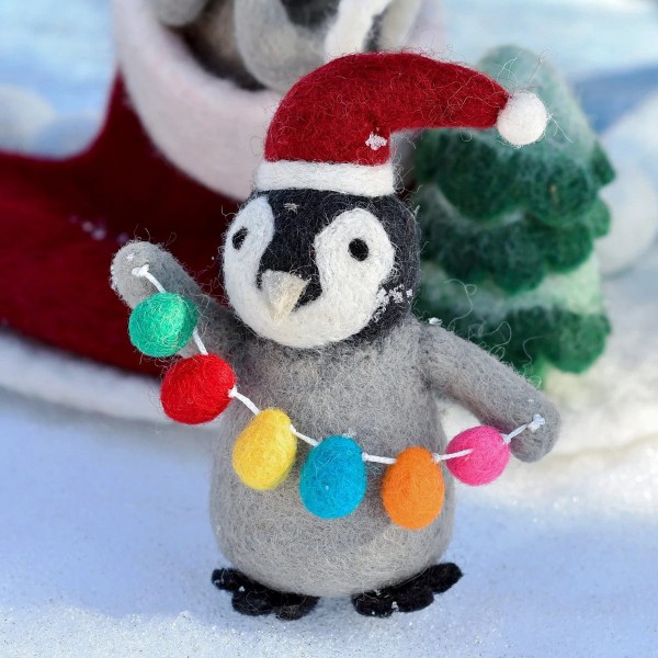 Brighten up playtime with this adorable Felt Penguin with Festoon Light Bulbs Toy! This charming handcrafted toy features a cute baby penguin decked out with festive light bulbs, adding a whimsical touch to any imaginative adventure.