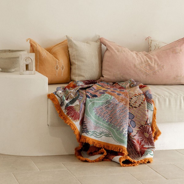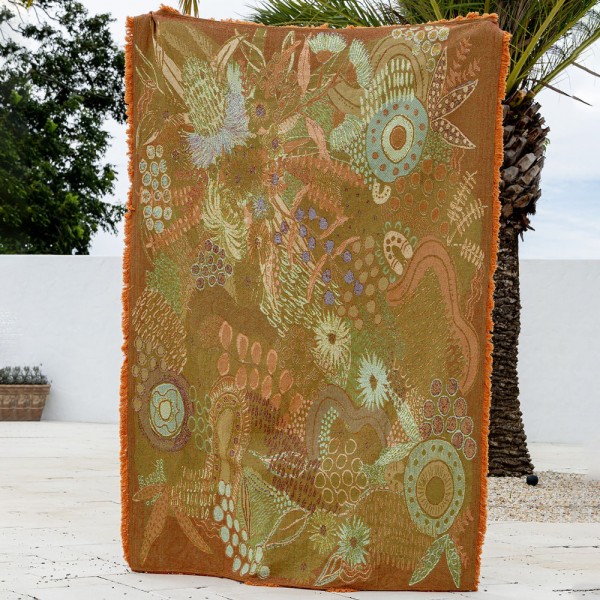 There’s so many uses for your new throw - They can be used as a picnic rug down the beach or park for the whole family to sit on, as a bed throw for extra warmth or to decorate or change the colour way of your bed, a lounge throw to add texture, vibrancy or warmth, a beach towel to dry yourself with after a swim in the ocean, a blanket to snuggle up in around a fire or to watch a movie, a tablecloth to decorate your dining table when you have guests around, a wall hanger to display as beautiful Indigenous tapestry and more.