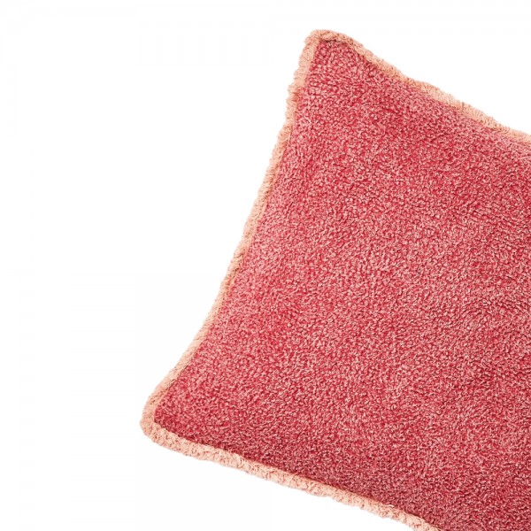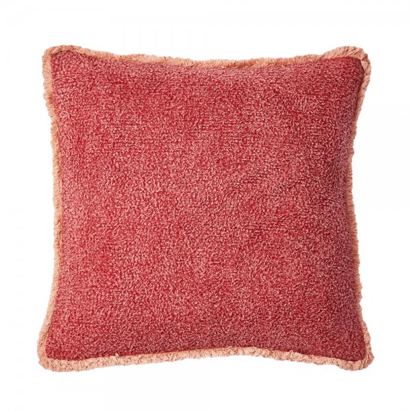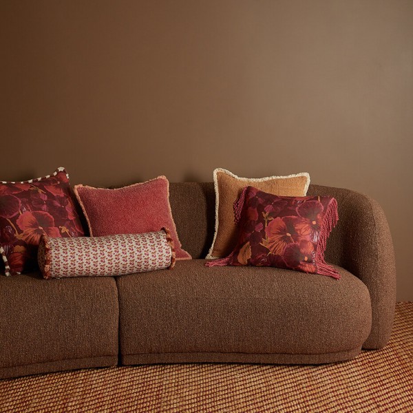 This deep pink cushion with fringing makes it a gentle, versatile layer that complements both florals and geometric designs.