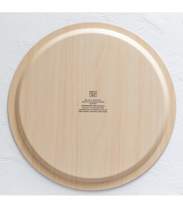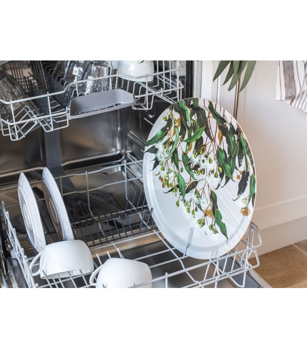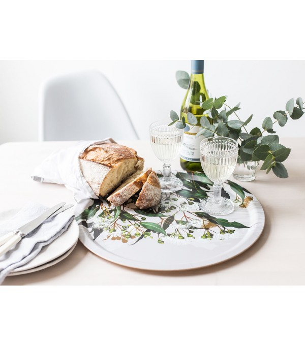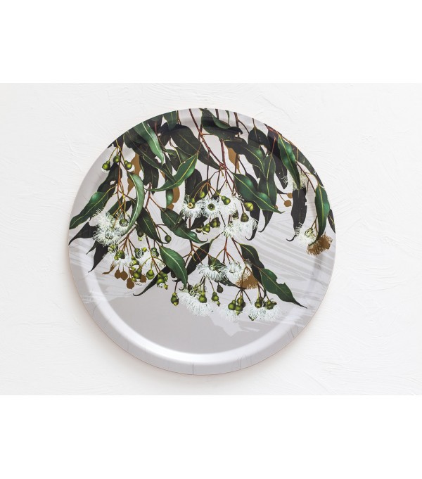 This round tray features artwork by the internationally renowned botanical Australian artist Meryl Bell. It showcases Australia’s flowering Eucalyptus Marri Gum (or commonly known as Red gum).