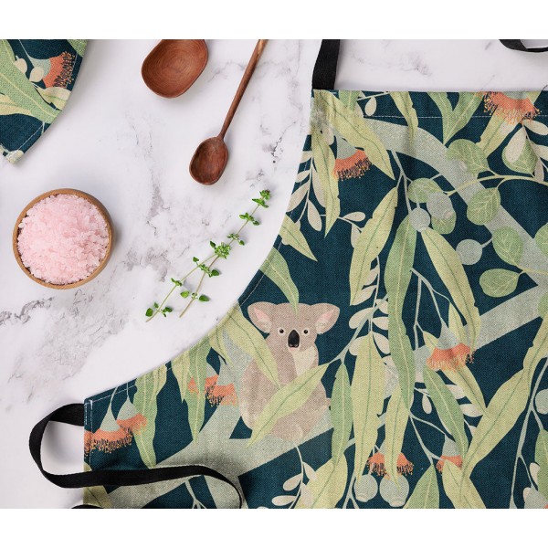 Experience the beauty and functionality of the Koala Apron featuring artwork by Australian creative Brigid Corocan. Made from high-quality cotton, this apron features unique artwork, making it both practical and a statement piece. Show off your love for art and cooking with this must-have accessory!