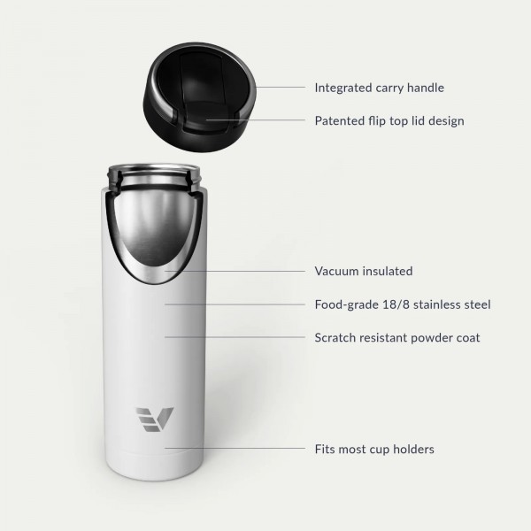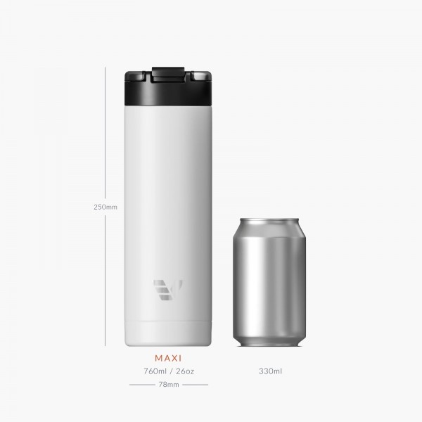 Keep your water cold & your body hydrated with Ever Vessel Maxi. Double wall vacuum insulated, this stainless steel water bottle features an integrated carry handle & leak proof flip top lid.